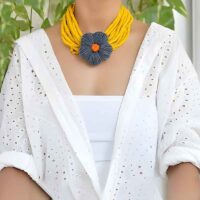 Silk bib necklace with handmade crochet flower