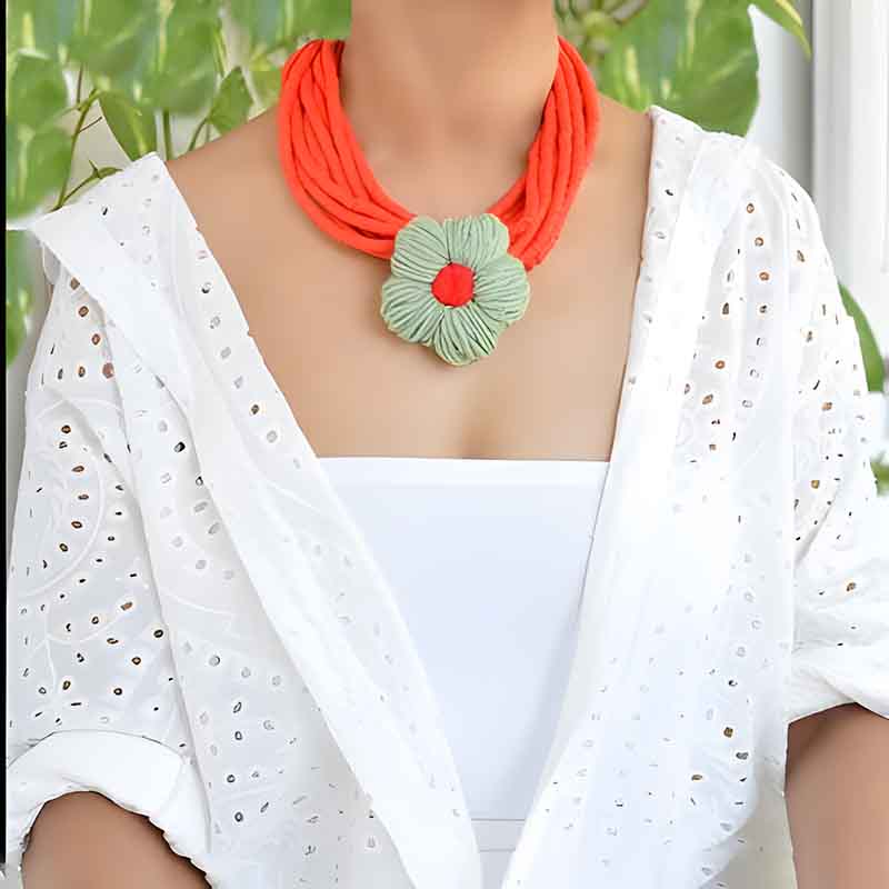 Tags crochet flower pendant, HANDWOVEN;, mulitlayered necklace, NECKLACE, WOODEN BEADS
