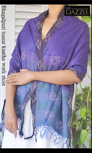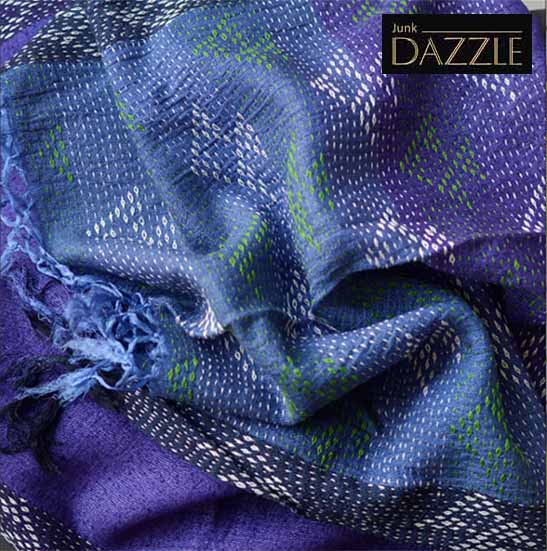Bhagalpuri Indigo Combination Tussar stole with Bengal kantha work