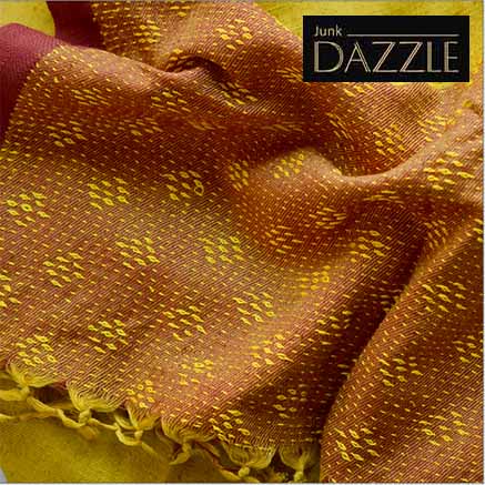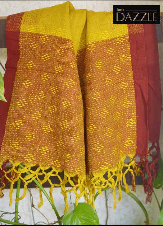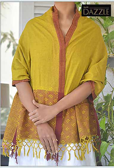 Bhagalpuri Golden Yellow Tussar stole with Bengal kantha work