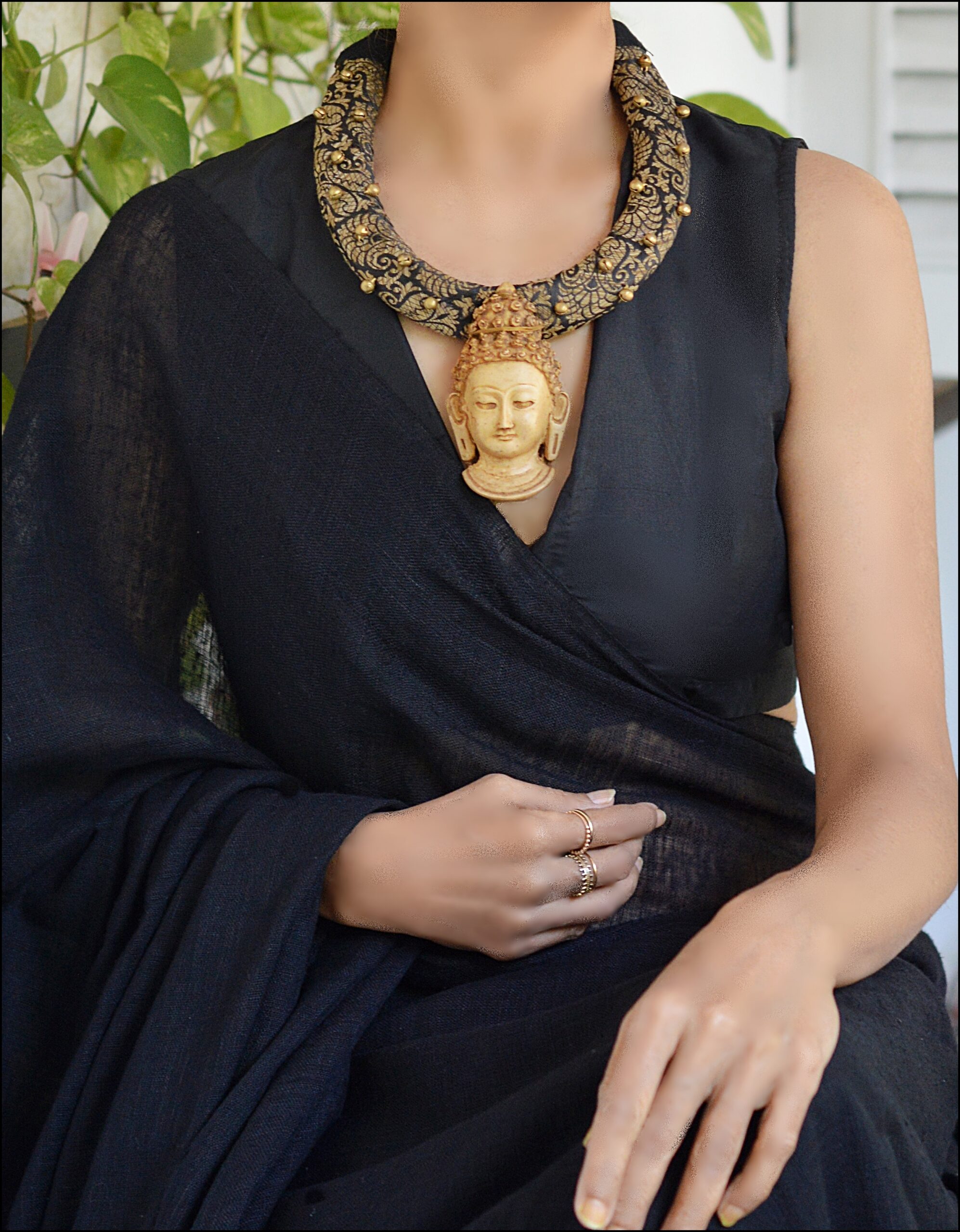 Fabric necklace with Buddha pendant