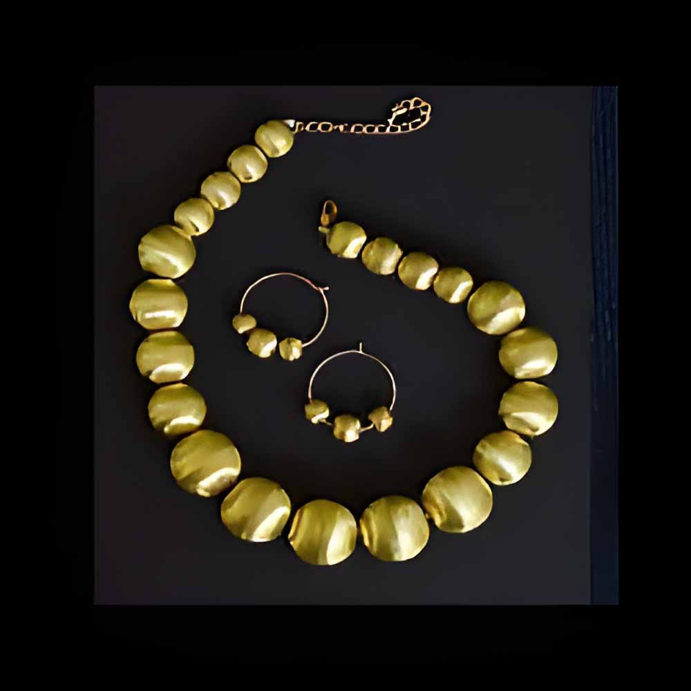 Gold toned ball beads necklace with earrings