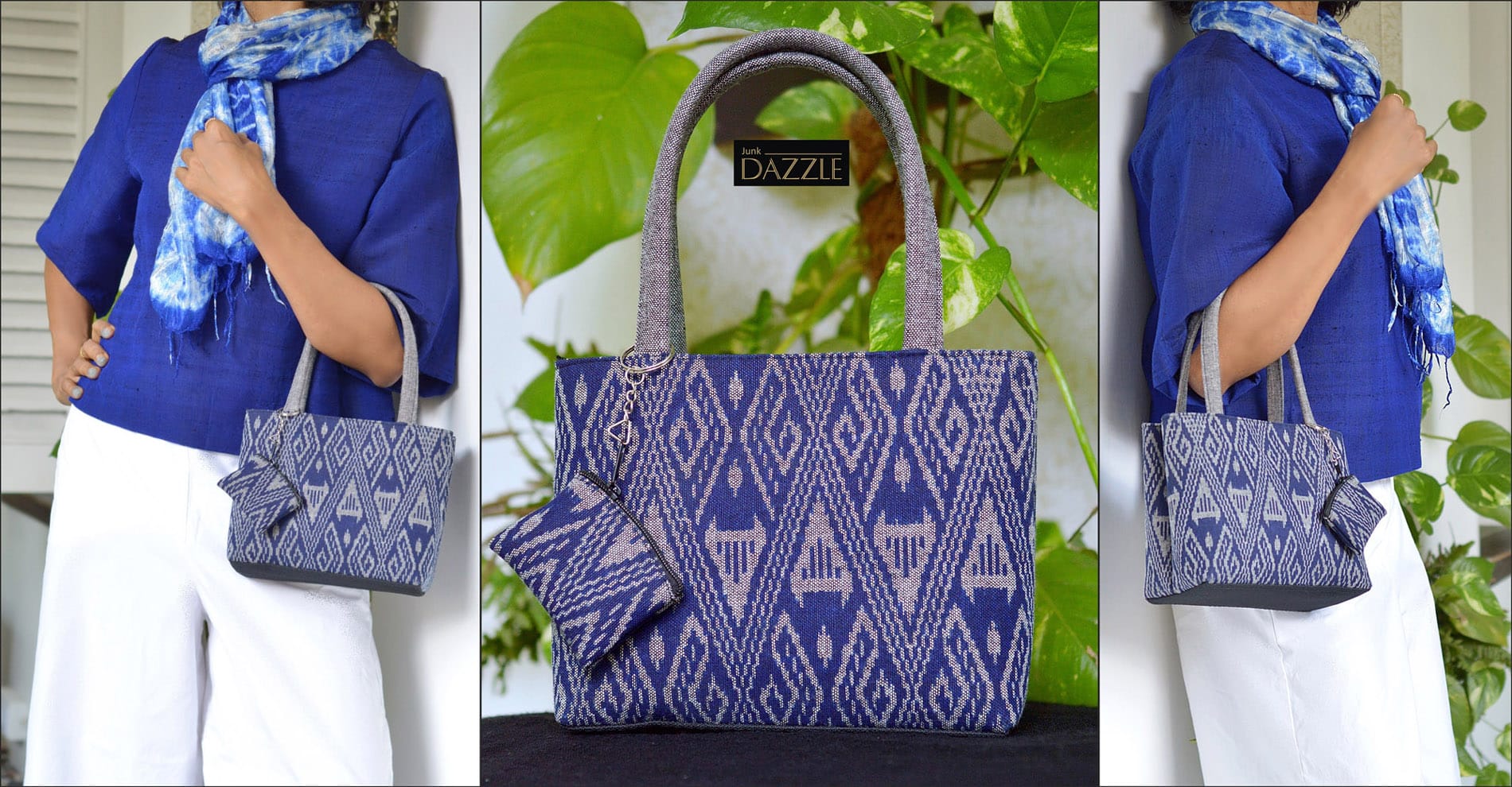 Handwoven Thai Hmong Indigo dyed fabric bag with coin purse and double compartments