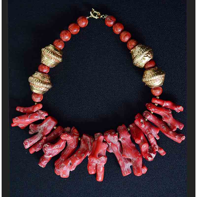 Raw coral sticks necklace with Nepali gold beads