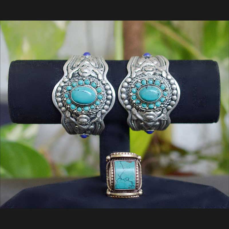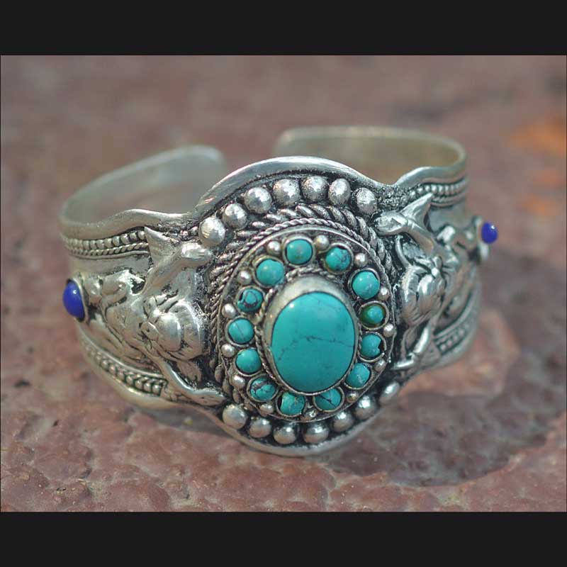 Tibetan Single piece Open Cuff Turquoise Bracelet (Adjustable)