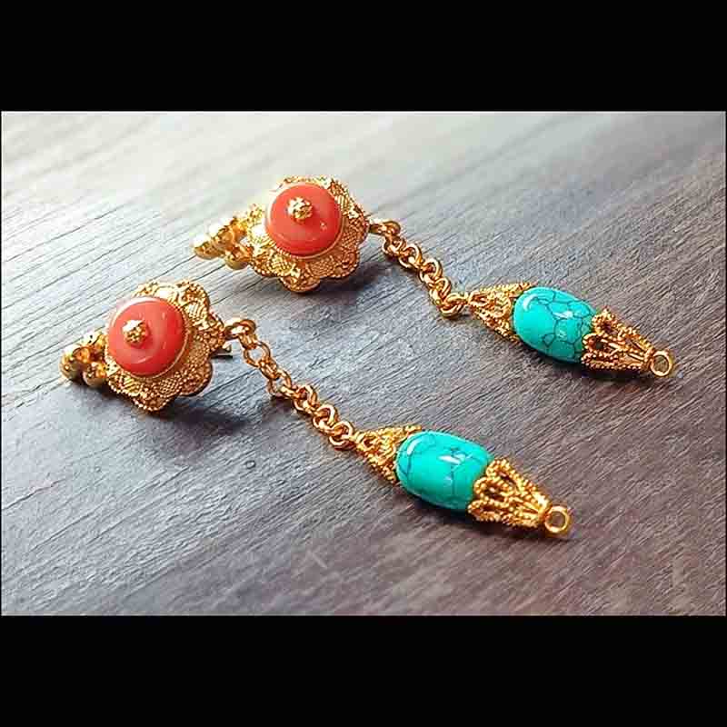 Traditional ethno Tibetan gilded brass norbu earrings
