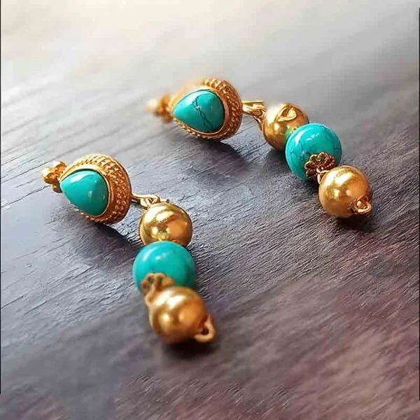 Traditional ethno Tibetan gilded brass norbu earrings